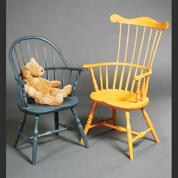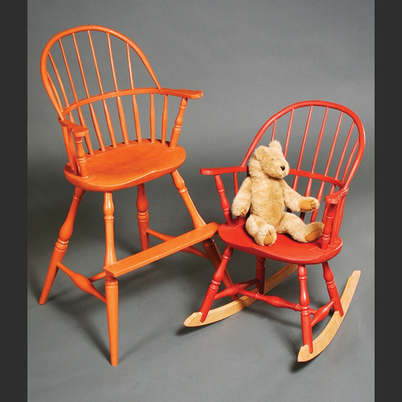 These chairs are the same as the adult chairs only reduced in size by about 25 percent. They are just the right size for kids from toddlers to about 8 or 10. Although the high chair has no tray it is scaled to the correct height for allowing a youth to eat at the dinning room table.